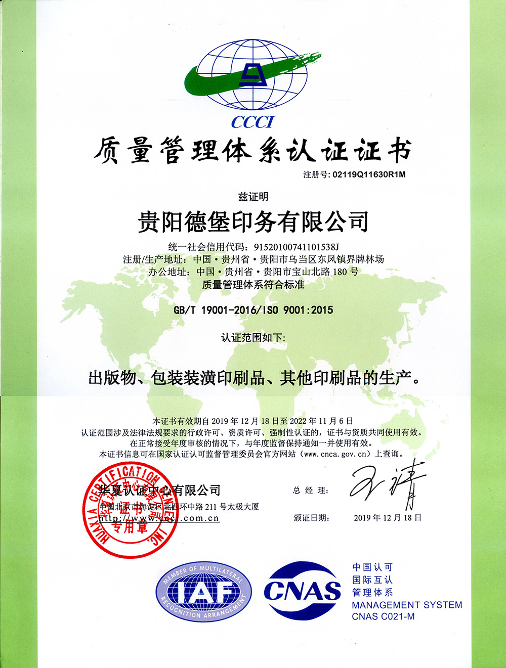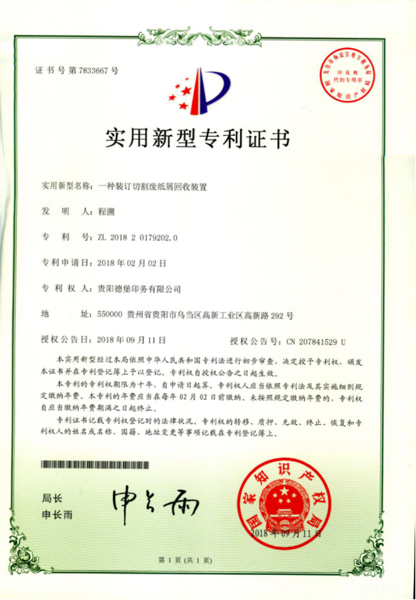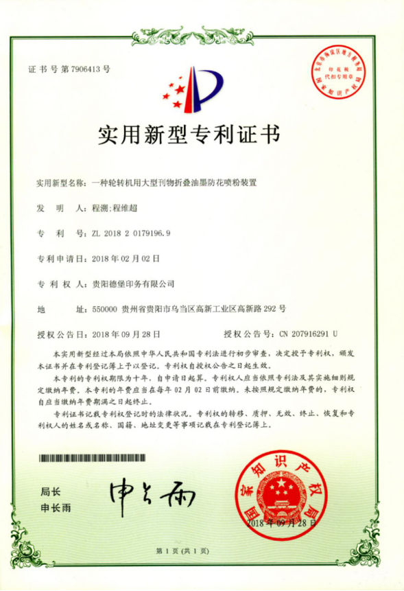 公司重视设备改造与技术创新,引进国际水平的印刷设备与印刷技术,公司拥有11项实用新型专利,通过“ISO9001质量管理体系认证、ISO14001环境管理体系认证、ISO45001职业健康安全管理体系认证”,是贵州省首批通过绿色认证的企业之一,全面推动绿色环保生产。